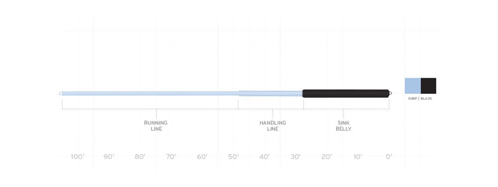 Cast out and get down with the Sonar Surf. Designed with a 27’ Sink 6 head the Sonar Surf is THE ideal line for single and double hand rods in the surf.